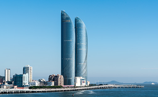 廈門建發(fā)大廈是由一棟超高層辦公樓和多棟裙房組成的建筑群,主樓高215.45米,48層;裙房最高為5層